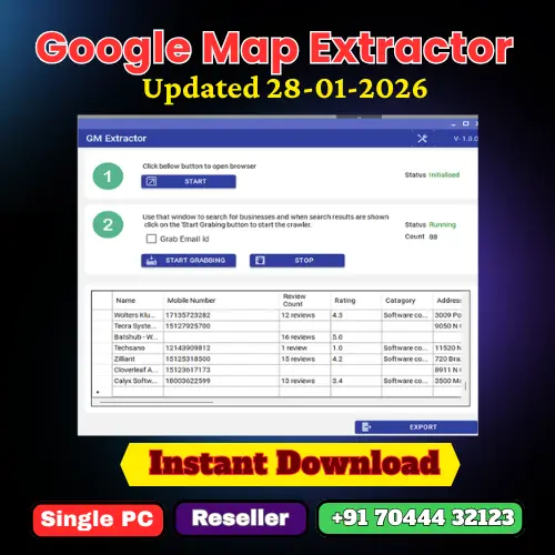 The ultimate Google Map Extractor Software designed to provide a powerful solution for scraping data from Google Maps. With its Windows-based platform, this software runs seamlessly on your PC, allowing you to extract valuable information from Google Map listings effortlessly.
